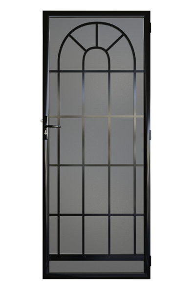 The Bentleigh Steel Security Door features a prominent arch within the door's frame. A striking image from the street view, make a statement with this secure and special look.
