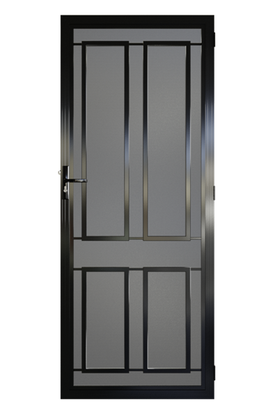 The Eltham aluminium security door is a multi-skilled security door as it suits any style of timber door with panels in it. The rectangular boxes stand out and create a small 3D effect so they are the focal point of the design. The Eltham security door is a very popular choice because of its simplicity. A door that does its job without fuss.