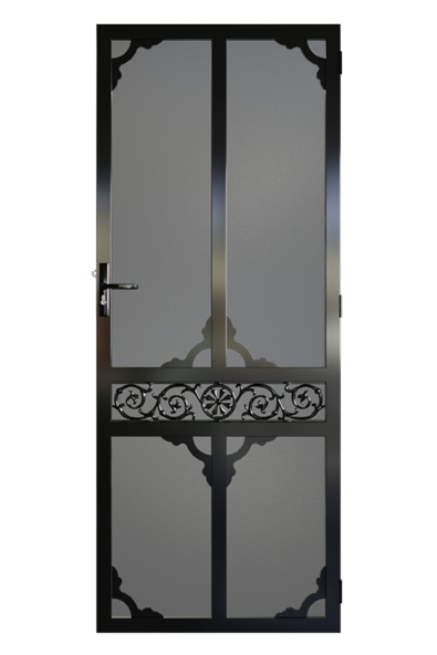 The Glen Iris steel security door is a great choice for your heritage style home. The central design elevates it from a more simple heritage design. The scroll work is reminiscent of wrought iron and adds a central focus to your home's facade.