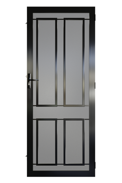 The Middle Park Crimsafe security door is a multi-skilled security door as it suits any style of timber door with panels in it. We have designed the rectangular boxes to stand out and create a small 3D effect so they are the focal point of the design. This is a very popular choice because of what you see; a clean, simple design that will do its job without creating a fuss.