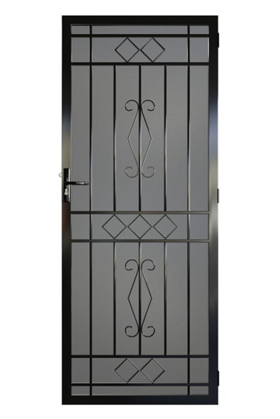 The South Yarra steel security door is a elegant security door designed to suit either an Art Deco or older style home. The South Yarra works perfectly with home with lead light or wrought iron work with it's scrolls and diamonds. The South Yarra is a timeless design, it has lasted the test of time and getting stronger and stronger in popularity