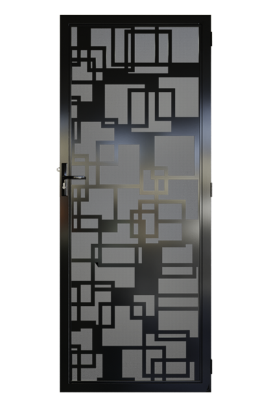 The Templestowe is a laser cut security door celebrating bold and innovative design. The illusion of a 3D effect is created through the layered boxes as they zig zag from left to right