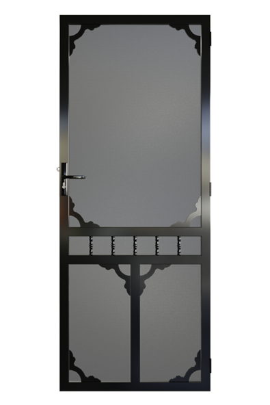 A beautiful security door radiating with old world charm.